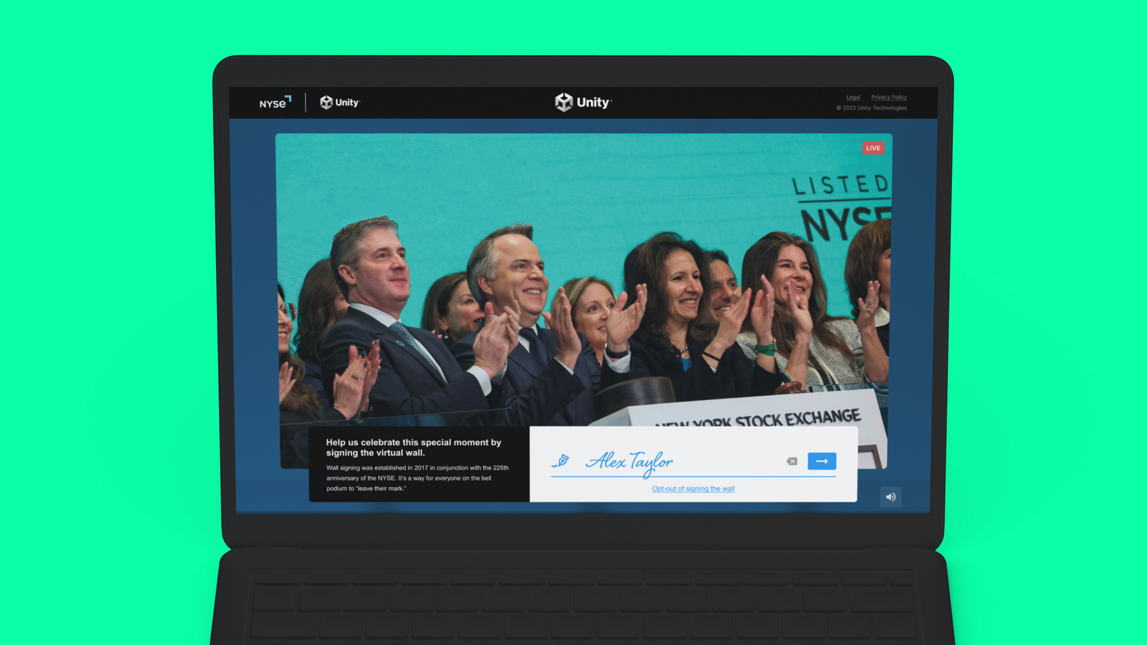 For the NYSE, Initial Public Offerings (IPOs) are kind of a big deal. When a company goes public (it happens a lot, sometimes twice a day), their leaders and employees descend upon the iconic trading floor to open up trading for the day by ringing the bell, leave their mark on the exchange by signing their names on the wall, and fly their company's banner for the world to see. It's a whole thing. Unfortunately, so was COVID. Live events weren't really happening for a while there. So we figured out how to do it all virtually.